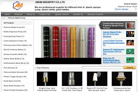 Founded in 2007, Aman IndustryCo., Ltd. specializes in the production of plastic sprayer pump and caps and other related products. Like bottles. It consists of many professional engineers with rich experience in the plastic industry. The main products include:,aluminum cap, aluminum pot, cream pump,dropper series,glass bottle, heavy cap series, lotion pump, trigger, universal sprayer, roll-on bottles, etc.The main target markets are regions and countries in Europe, Middle-East, South-America and South Asia.