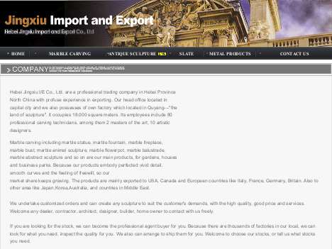 Hebei Jingxiu I/E Co. , Ltd. is a professional trading company in China, with profuse experience in trade business. Our company also possesses of own factory, specializing in producing interior and exterior decoration products. Our products have been exporting to many countries all over the world.