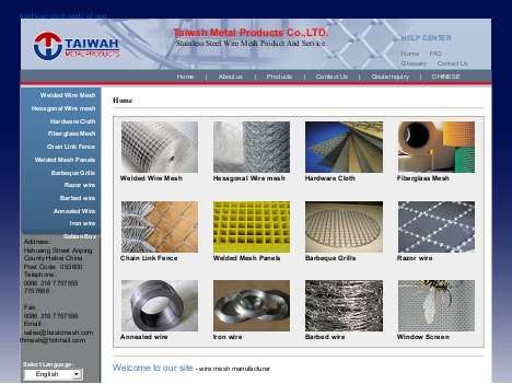 Our company is mainly engaged in the production and sale of mesh and netting products including the stainless steel wire mesh & cloth , brass wire mesh, square wire mesh , welded wire mesh , Hexagonal Wire Mesh, fencing mesh, iron wire and window screening. We would like to develop business relations with new and old friends both at home and abroad. continuously for "TaiWah Mesh and Netting" being deeply remembered by users by our multifunction and all-sided service system.