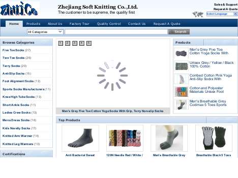 Our company is specilized in manufacturing various kinds of high and middle-quality socks, includingFive Toe Socks, Two Toe Socks, Terry Loop Socks, Yoga Non-slip Socks, Foot Alignment Socks, Custom Sport Socks, Knee High Tube Socks and etc. You could choose a suitable material from cotton(mercerized, combed, recycled), polyester, acrylic, wool, bamboo, modal, tencel, coolmax ,nylon(Normal or tactel), chenille, PP and others you like.