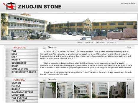 Xiamen Zhuojin Stone Co.,Ltd was founded in 1998. We specialize in complex slab, tile, countertop, caving, sinks and mosaics. Also we supply material to the construction industry. Since our founding the company has been growing steadily, capturing increased worldwide attention.
