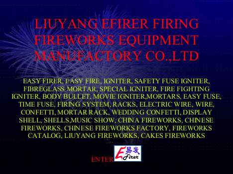 EASY FIRER, EASY FIRE, IGNITER, SAFETY FUSE IGNITER, FIBREGLASS MORTAR, MORTARS, EASY FUSE, TIME FUSE, FIRING SYSTEM, RACKS, ELECTRIC WIRE, WIRE, CONFETTI, MORTAR RACK, WEDDING CONFETTI,DISPLAY SHELL,SHELLS,MUSIC SHOW,CHINA FIREWORKS, CHINESE FIREWORKS, CHINESE FIREWORKS FACTORY, FIREWORKS CATALOG,LIUYANG FIREWORKS, CAKES FIREWORKS