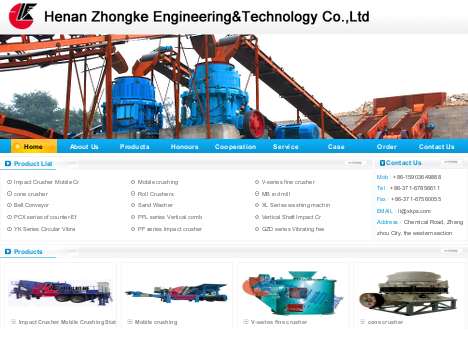 Henan Zhongke Engineering & Technology Co., Ltd offers various crushers, such like jaw crusher, impact crusher, cone crusher, vertical impact crusher, hammer crusher, VSI crusher, vertical combination crusher and so on. The leading products include whole set mine- selecting equipment and sandstone equipment such as ball mill, crusher, grinder, magnetic separator, flotation machine, classifier, drier, sprial chute, shaking table, sand-maker, oscillating screen, sand washer, conveyor, block making machine, aac equipment, etc. Mine-selecting equipment is applicable to select non-ferrous metal ore such as iron, copper, gold, silver, lead, tungsten, molybdenum, manganese and non-metal ores such as fluorite and quartz. Sandstone equipment is applicable to construct airport, railway, freeway, average highway, national large bridge, sub-bottom tunnel, land tunnel and new-type high building