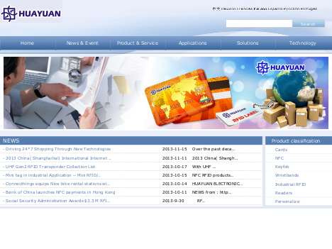 HUAYUAN is a supplier for global System Integrators with RFID Technology. It offers a wide range of smart cards and RFID tags, as well as readers and card accessories. The products can be embedded with 125KHz EM4102,T5577,Hitag; 13.56Mhz Mifare, ICODE, Tag-it; 868Mhz-915Mhz Class1 Gen2 chips. The encapsulation type covers ISO Card, keyfob, wristband,disc tag,laundry tag etc. HUAYUAN also welcome OEM service and personalization to create value for the sponsors. HUAYUAN products are widely applied in access control system and industrial managements projects. For more information, please link to www.huayuansh.com