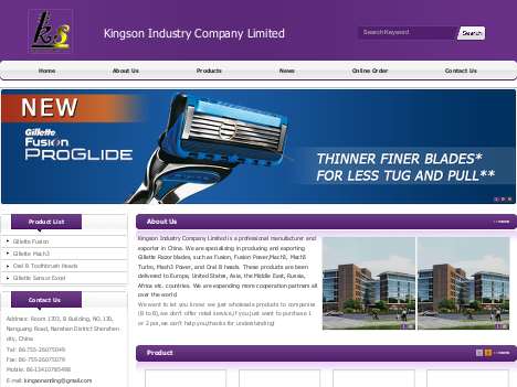 Kingson Industry Company Limited registered in Hongkong has factories in Shenzhen city, in the south of China. As a manufacturing and trading company, we mainly supply Gillette Blades and Oral B.