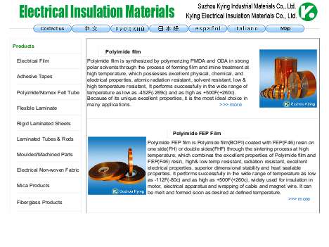 I am from SUZHOU KYING Industrial Materials Co., Ltd. we are a company professionally engaged in Electric & Electrical Insulation materials; we are the bigger exporter of insulation materials in our market. I think we may start co-operation in the area of insulation between us. What we supply is just meet your requirements. Price is not the only advantage of our products; Quality and service are our advantages too.We believe that the quality is the soul of an enterprise. Advanced technics and scientific management are the key of our products? quality can be improved continually.
