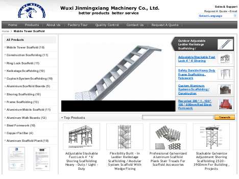 WUXI JINMINGXIANG MACHINERY CO., LTD. is a professional scaffolding and accessory manufacturer in china. Our company is located in wuxi, jiangsu province, 80km far from shanghai, and covers an area of 8000 square meters with 320 employees. We possess advanced equipment, strong R&D capabilities and a strict quality control system. With more than twenty years' efforts, the company has become a professional manufacturer and supplier of scaffolding equipment.