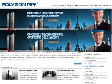 Manufacturing and suplying various plastic pipes and fittings, such as ppr pipe, ppr stabi composite pipe, ppr copper pipe, ppr glass fiber pipe, ppr antibacterial pipe, pe pipe, pex pipe, pex-al-pex pipe, pe-rt pipe