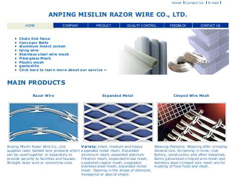 Our major products include: Razor Barbed Wire Products; Welded Wire Mesh Products; Galvanized Iron Wire Mesh; Insect Screening Series.