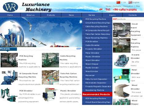 Located in Zhengzhou High and New Technology Development Zone, Luxuriance Machinery Manufacturing Co., Ltd. is a professional manufacturer and reseller of various recycling machine, shredder, grinder mill and separator, such as PCB recycling machine, circuit board recycling equipment, cable recycling machine, aluminium composite panel (ACP) recycling machine, Tetra Pak carton recycling machine, paper recycling machine, PCB shredder, cable shredder, e-waste shredder, metal shredder, plastic shredder, wood shredder, wood chipper, plastic grinder, wood grinder, micronizer, eddy current separator, electrostatic separator, e-waste magnetic separator, desoldering machine etc.