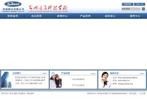 Shuangxi Garment Co.,Ltd. a sino-Foreign joint venture, was founded in Quanzhou China, in 1988. Today the company has more than 1,800 employees and is equipped with more than 1800 pieces of high quality equipment to produce garments. The annual output is around 2,8000,000 pieces, produced on 30,000 m2 of production area. The main products include: warm wear, sportswear and casual wear.100% of the production is exported to EEC and all over the world.
