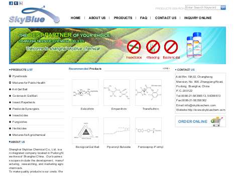Shanghai Skyblue Chemical Co., Ltd. is an integrated company located in Pudong New Area of Shanghai China. Our business scopes include the development, manufacturing, researching, and marketing agrochemicals.