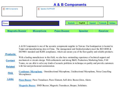 A & B Components is one of the acoustic components manufacturers in Taiwan. Our headquarters is located in Taipei and manufacturing sites in China. The management and finished products meet the ISO14000 & ISO9001 standard and RoHS compliance, which can assure you of the best quality and reliable products.