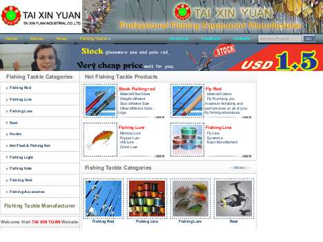 The main productions : Fishing Light, Net Float, Fishing Float, Cast Net, Fishpot, Handing Net, Fishing Net, Fishing Line, Fishing Tackle, Reel, Flaser, Fishing Lure,Lead Fish, Soft Bait,Leisure Tent, Fishing Accesories equipment have more than 100 series,There are 8 series and 20 different specifications of the fishing reels of which the annual production is more than 3,000,000,00 pieces.we invested large capital to import the advance equipment to develop the wide breadth carbon prepreg which filled up the domestic vacuity of the same area and ended the history of importing the raw carbon material to produce carbon fishing rods and carbon physical culture entertain productions .