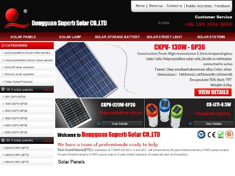 Dongguan Superb Solar Co., Ltd. , located in Dongcheng Technology Park, Dongguan City , is a high-tech-enterprise committed to new energy sources development. We?re professionally engaged in research, design and sales of solar panels, solar power system and solar lighting products. Meanwhile, our products in domestic 31 provinces have effectively popularized and applied into urban lighting and new rural construction, and exported to Europe, Asia, America, Africa and other countries and regions