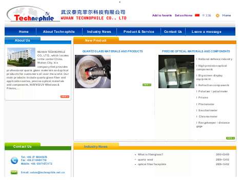 WUHAN TECHNOPHILE CO., LTD., which locates in the center China, Wuhan City, is a company that provides professional quartz glass materials and optical products for customers all over the world. Our main products include quartz glass fiber and application series, precise optical materials and components, NIR/VIS/UV Windows & Prisms, and so on.