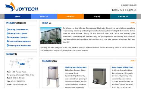 Tongxiang Joy Scientific & Technological Electronics Co., Ltd. is a professional enterprise specializing in developing, producing and selling automatic gates of intelligent drive control devices. Since our establishment, relying on scientists who have more than twenty years of experience in designing and manufacturing gate operators, we have successfully developed international standard products, such as electronic limit gate operators and aluminum shell gate operators.