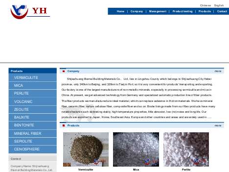 Shijiazhuang Eternal Building materials co.,Ltd, lies in Lingshou County which belongs to Shijiazhuang City Hebei province, only 240km to Beijing, and 320km to Tianjin Port, so it is very convenient for products' transporting and export. Our factory is one of the largest manufacturers of non-metallic minerals, especially in processing vermiculite and mica in China. At present, our factory introduce advanced technology from Germany and specialized automatic production line of fiber products.