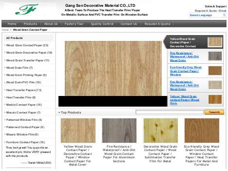 Gang Sen Decorative Material CO.,LTD has experienced over 10 years on producing heat transfer film/paper for transferring on the aluminium profile and all the other metallic surface.and the pvc transfer film for transferring on the wooden surface in China.The company is located in Foshan City,Guangdong Province,where is the mostwell-known aluminum sections market in China .GANG SEN has a strong team .The team is an innovative and unity one. Her products are popular at local market and overseas market as well due to its excellent quality.Expecially on the heat transfer film/paper,the production team and technology are more stronger now by combination with DONGGUAN HUMEN KEDA DECORATIVE MATERIAL CO.,LTD,and with the more advanced production lines, GANG SEN people have confidence to supply the best quality and the best service to her customers