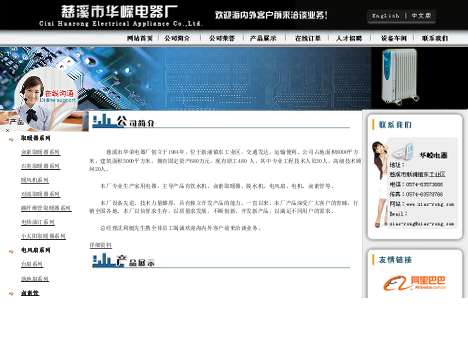 Founded in 1984, Cixi Huarong Electrical Appliance Co., Ltd. lies in East Industrial Zone of Xinpu Town and has convenient traffic. It occupied an area of 8,000 square meters and building area of 5,000 square meters. Its real assets reach RMB6,800,000 yuan. It has employed 480 staff. Among them, there are 30 engineering professionals and 20 senior technical advisers.